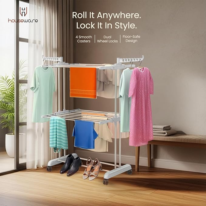 - Ample Drying Space: 2-tier double pole design offers enough room for drying clothes, towels, and linens efficiently.