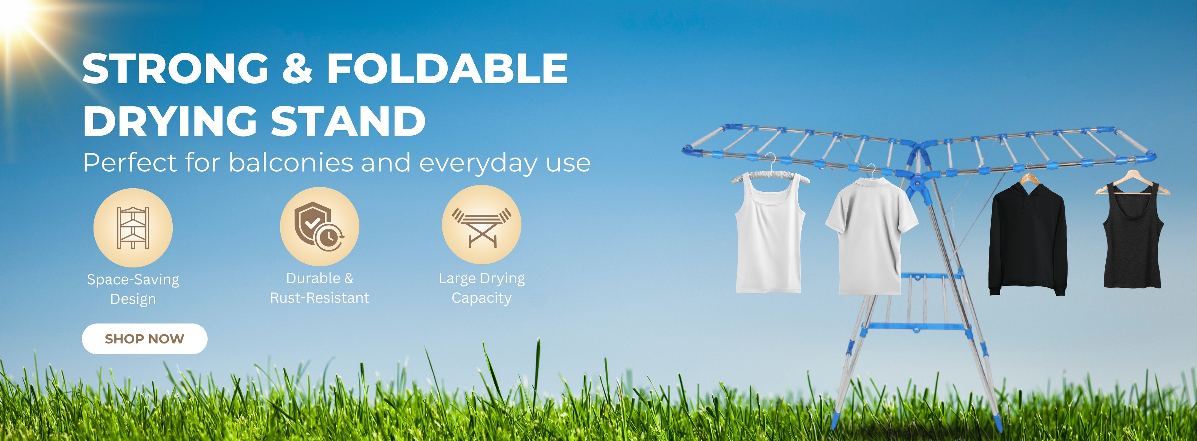 Houseware specializes in premium stainless steel foldable cloth drying stands, including models like the Butterfly Stand, 3-Tier Stand, Double Pole 3-Layer Stand, and Jumbo 4-Tier Stand. These products are designed for efficient indoor and outdoor drying, especially in compact spaces.